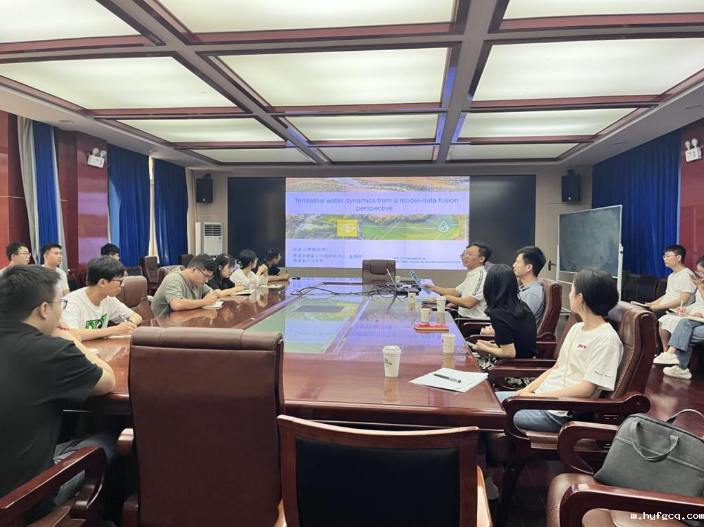 报告中,冷国勇研究院首先对全球多模型土壤水预测的不确定性做了简要介绍;随后从气候变化以及陆气反馈的角度讲述了影响土壤水分动态变化的机制;最后从观测数据约束手段阐明了未来全球土壤水分动态变化的规律及地域性差异以及观测约束技术在降低全球土壤水预估不确定性方面的效能。彭建教授介绍了使用遥感技术对地表关键过程和重要参数数据产品研发的重要性以及遥感技术在水文极端事件监测、水热通量模拟以及水文极端事件数字孪生等方面的应用。汇报结束后,两位专家还与现场的师生进行了积极互动,对现场师生提出的问题作了详细解答,增强了师生对全球土壤水分不确定性降低方法和遥感技术的认识。