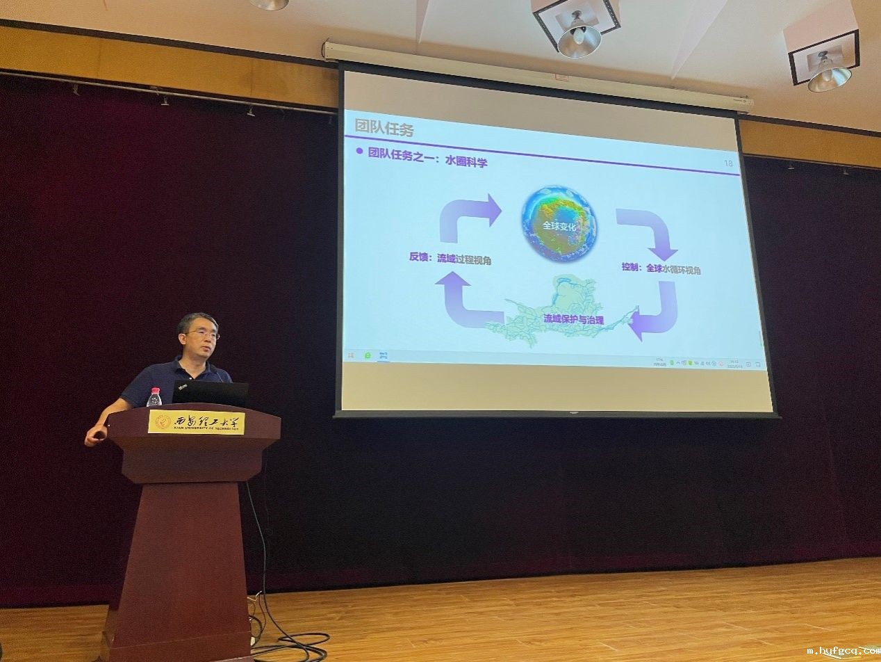 9月19日下午,西北旱区生态水利国家重点实验室生态水利大讲堂在金花校区图书馆报告厅开讲,清华大学水利系钟德钰研究员为我校师生做了题为《水圈科学的关键问题及其理论基础》的学术报告,西北旱区生态水利国家重点实验室、水利水电学院和土木建筑工程学院师生约300余名师生参加了报告会。