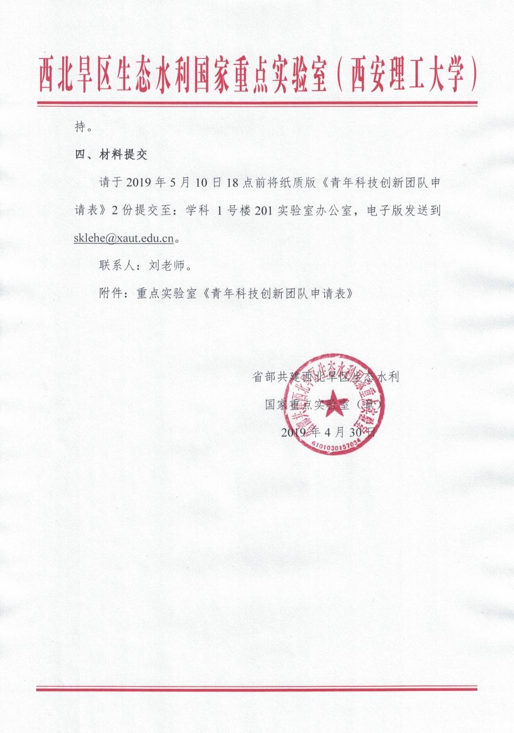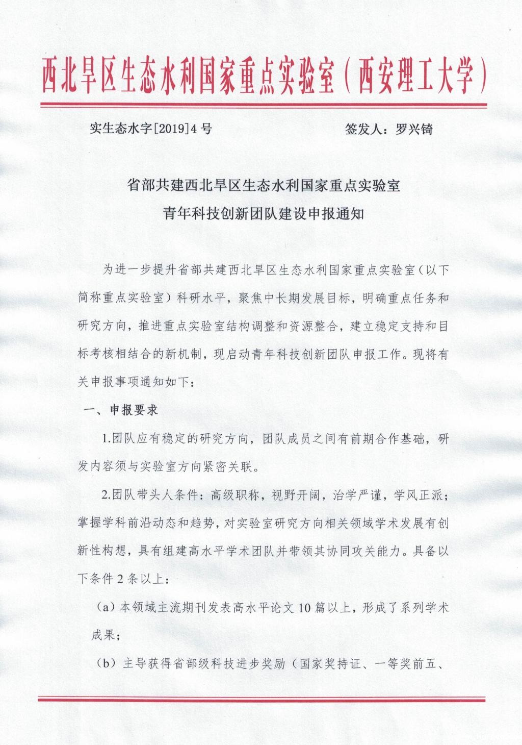省部共建西北旱区生态水利国家重点实验室青年科技创新团队建设申报通知